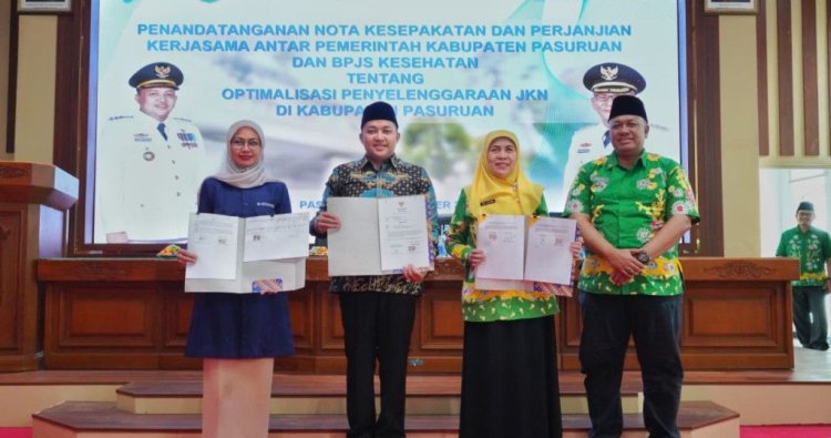 PASURUAN - Bupati Pasuruan, Rusdi Sutejo, menyerukan semangat kolaborasi dan kerjasama antar Perangkat Daerah untuk mengoptimalkan pelaksanaan program Universal Health Coverage (UHC) di wilayahnya. Ajakan ini disampaikan usai penandatanganan Nota Kesepakatan antara Pemerintah Kabupaten Pasuruan dengan BPJS Kesehatan serta Perjanjian Kerjasama UHC antara Dinas Kesehatan dan BPJS Kesehatan.